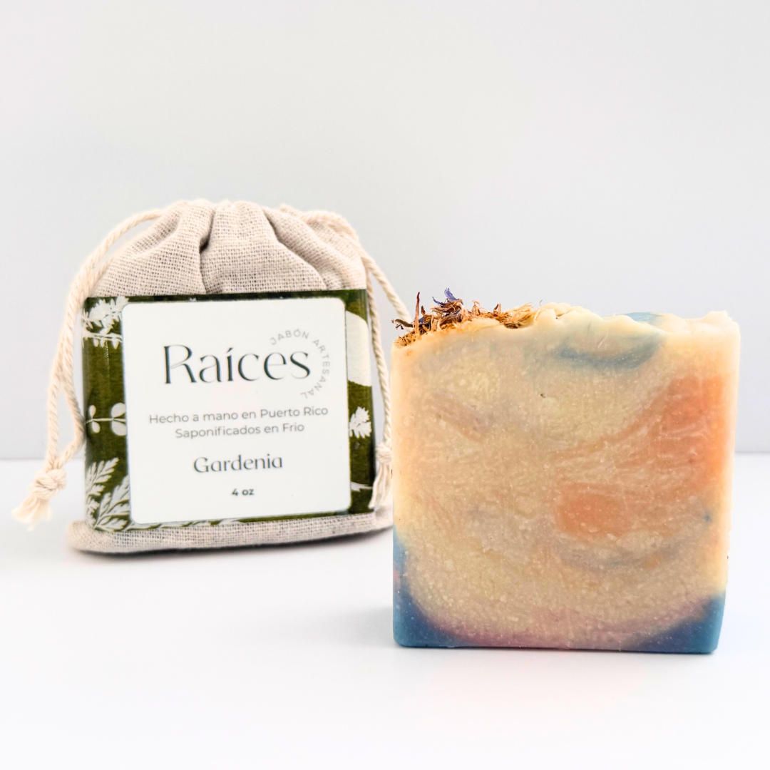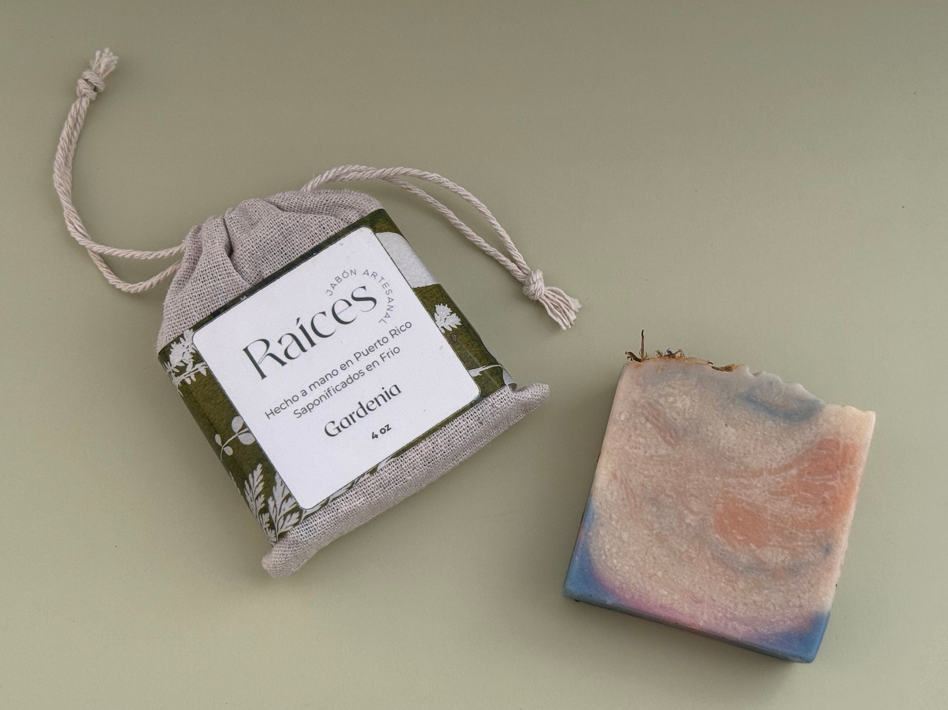 Hecho por la marca puertorriqueña Raíces Jabón Artesanal.
