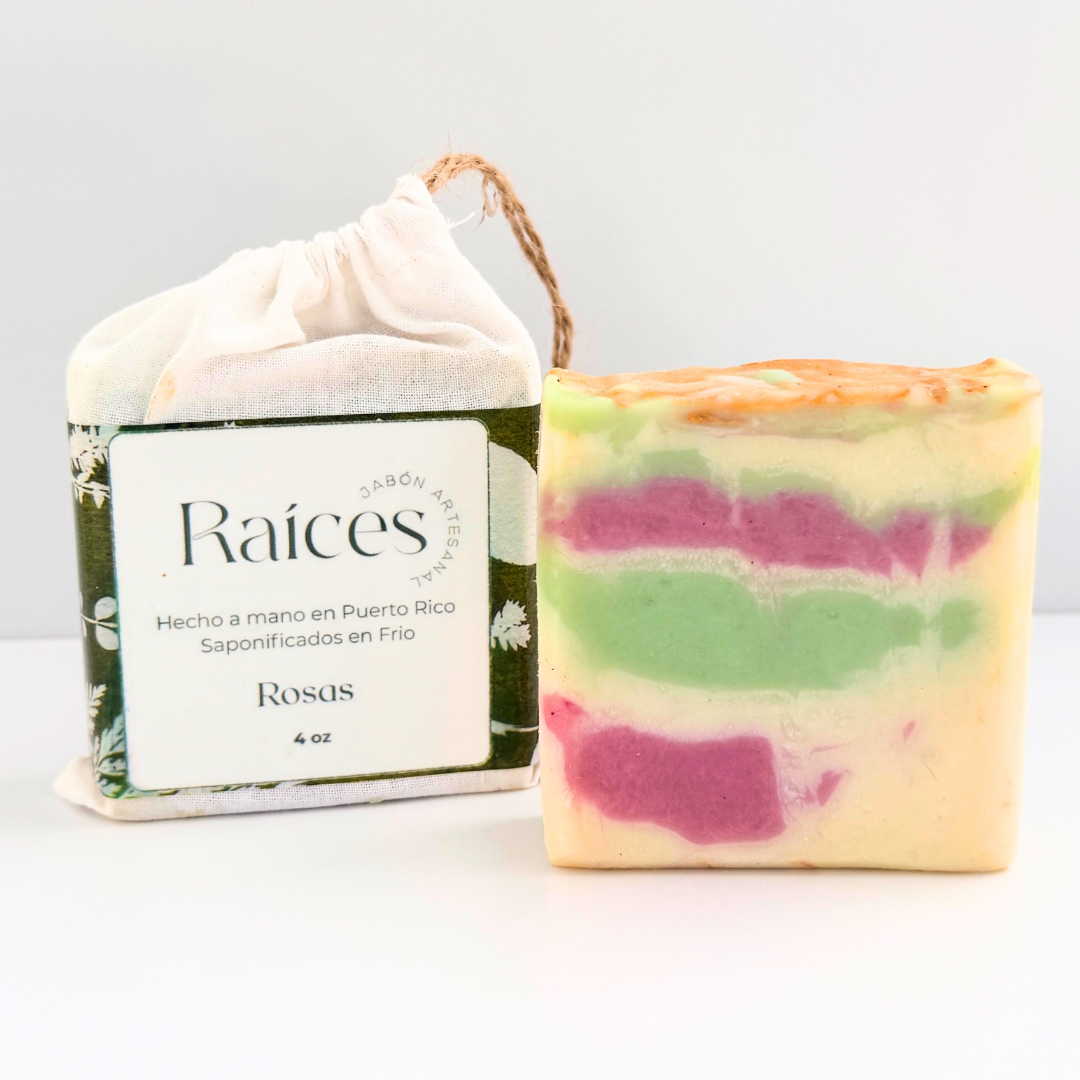 Hecho por la marca puertorriqueña Raíces Jabón Artesanal.